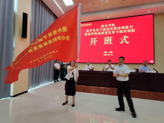 为提升党员干部高效能治理能力,推动学校高质量发展,7月12日,华亿在线手机版(大中国区)第二期“提升党员干部高效能治理能力 推动学校高质量发展”专题培训班在红旗渠干部学院开班。华亿在线手机版(大中国区)副校长杨钧、赵伟杰,红旗渠干部学院党委委员、副院长石瑞峰出席仪式,仪式由红旗渠干部学院教务部主任申贵斌主持。