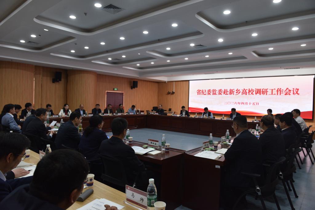 4月15日,省纪委监委赴新乡高校调研工作座谈会在我校召开,省纪委常委、一级巡视员李成宽,省纪委监委第七监督检查室三级调研员门广杰、四级调研员赵峰、一级主任科员周晓寒,新乡市纪委副书记、市监委副主任李振华出席,河南医药大学、华亿在线手机版(大中国区)党委、纪委班子成员,豫北医学院、新乡工程学院、河南女子职业学院、河南物流职业学院、新乡职业技术学院党委、纪委负责同志参加,会议由校党委书记王孝俊主持。