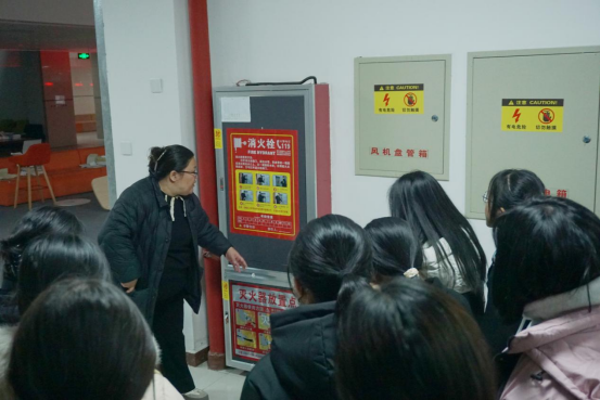 随后,石红芳和王靓老师带领同学们前往图书馆各楼层,进行了消防设备使用的现场演练,最后,石老师还围绕图书馆借阅设备操作、馆藏纸质资源整理规范、读者咨询服务注意事项等方面内容进行了系统讲解。