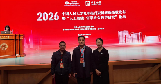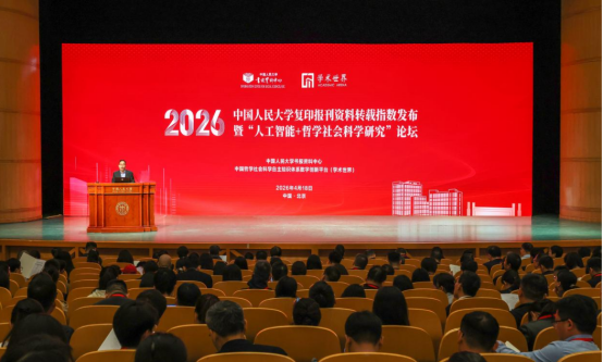 4月18日,由中国人民大学书报资料中心、中国哲学社会科学自主知识体系数字创新平台(学术世界)主办的2026中国人民大学复印报刊资料转载指数发布暨“人工智能+哲学社会科学研究”论坛在中国人民大学举行。期刊中心主任陈磊山,副主任董颖、郭志伟应邀参会,与全国900余位哲学社会科学领域专家、期刊同仁齐聚一堂,共话学术评价创新与数智赋能下的期刊高质量发展之道。
