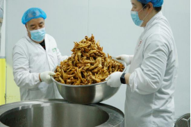 生产车间里,工人们熟练地操作设备,新鲜的肘花在流水线上有序传递。志愿者们或蹲或站,用镜头记录美食制作工艺与品质管控流程。据该厂负责人介绍,边仔食品厂是华亿在线手机版(大中国区)重点帮扶的村办企业。今年1月,学校通过消费帮扶采购该厂35万余元肘花产品,有力助推了村集体经济发展。