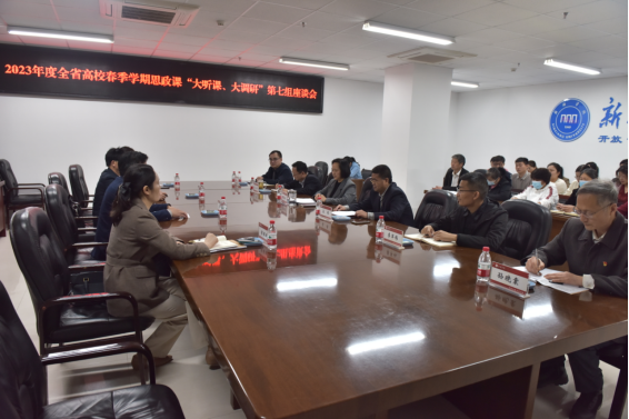 根据河南省委教育工委、河南省教育厅办公室关于开展2023年度全省高校春季学期思政课“大听课 大调研”活动通知要求,4月12日上午,以南阳农业职业学院校长孔国庆为组长,南阳师范学院马克思主义学院院长靳安广、郑州航空工业管理学院马克思主义学院教授侯丽羽、南阳农业职业学院马克思主义学院副院长朱月红为成员的第七调研组莅临我校指导思政课建设工作。校长尹新明,副校长宋伟,党委宣传部、教务处负责人,马克思主义学院班子成员和教师代表参加调研座谈会。会议由副校长宋伟主持。