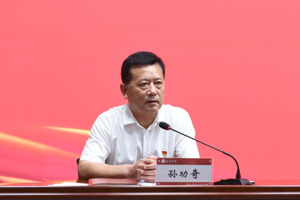 党委书记孙功奇对与会人员开展廉政集体谈话。孙功奇指出,在从严管党治校中,党员干部作为“关键少数”,不仅要严于律己、在学纪知纪明纪守纪中发挥示范引领的“头雁效应”,更要严负其责、严管所辖,扛稳扛牢管党治党政治责任,在增强基层党组织政治功能和组织功能、推动基层党组织全面进步全面过硬中担负起“关键责任”。