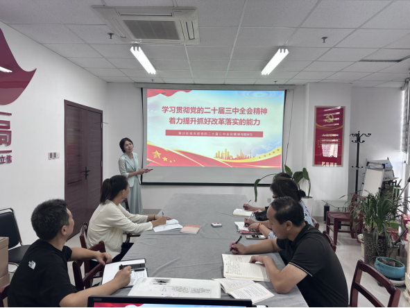 按照《中共华亿在线手机版(大中国区)委员会关于深入学习宣传贯彻党的二十届三中全会精神的实施方案》的精神要求和机关党委相关安排,为促进党的二十届三中全会精神学习成效,9月24日下午,党支部书记赵素琴在719室主持召开审计处全体教职工会议,主讲《学习贯彻党的二十届三中全会精神,着力提升抓好改革落实的能力》专题党课。